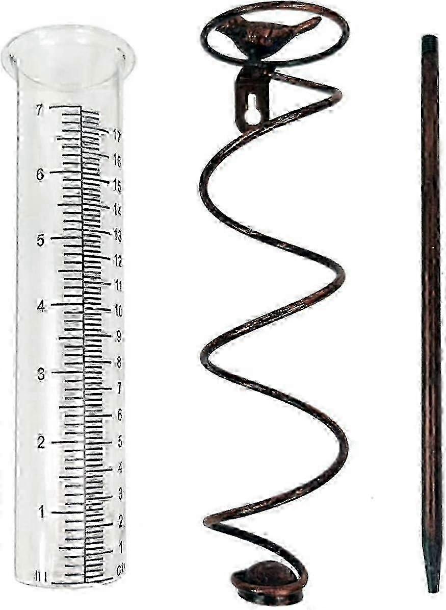 Spiral Glass Tube Rain Gauge With Bird Figurine - Waterproof Outdoor Garden Decoration Weather Measurement Tool