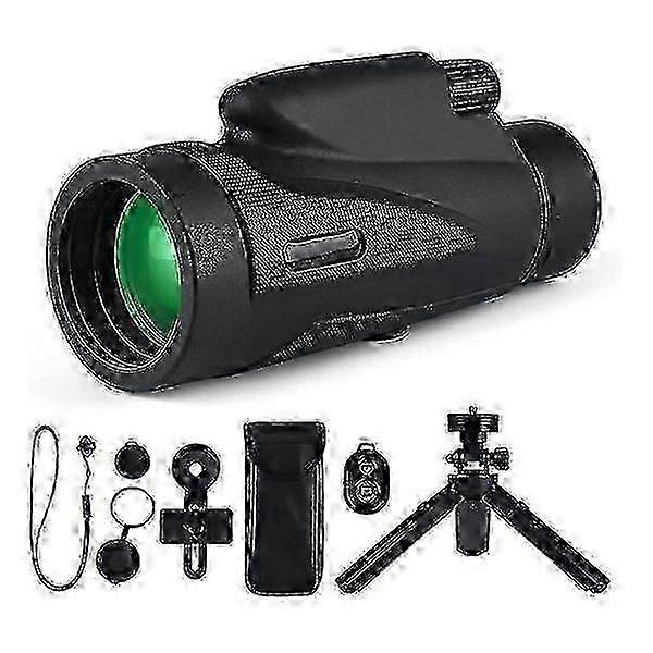 1 set of black composite material telescope large eyepiece 12x50 single tube telescope low light night vision outdoor telescope includes: 1 telescope, 1 hanging rope, 2 lens covers, 1 phone clip, 1 storage bag, 1 remote control, 1 tripod holder color box packaging