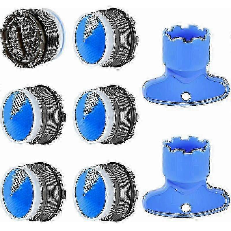6pcs, M18.5 Aerator, Kitchen Bathroom Nozzle, Water Saving Plastic Sink Fcet Aerator With 2 Wrench, Blue