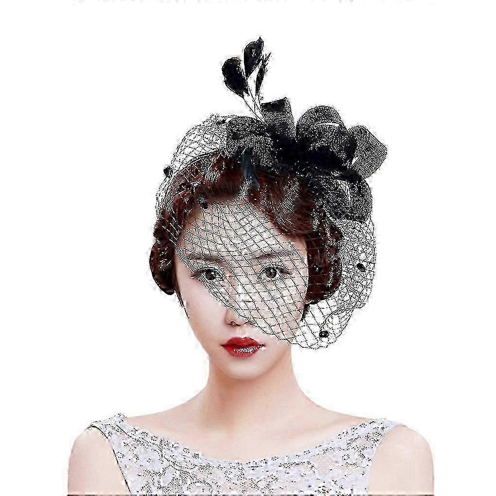 53s Veil Fascinator Hats For Weddings/Cocktail Parties - Lace Bow Headpiece With Hairpins