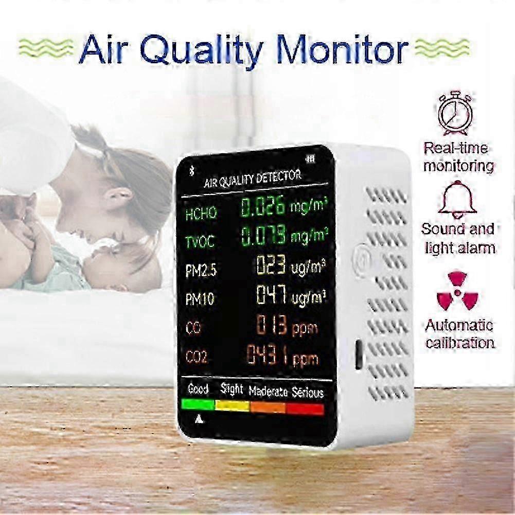 6 In 1 Pm2.5 Pm10 Hcho Tvoc Co Co2 Multifunctional Air Quality Detector Lcd Screen Display Air Quali -NEW