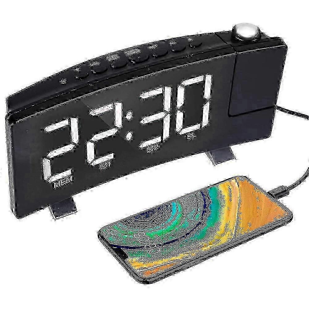 Projection Alarm Clock With Usb Charger - 180 Rotating Led Bedroom Clock Phone Dock With 4 Dimmer Modes_cp -NEW