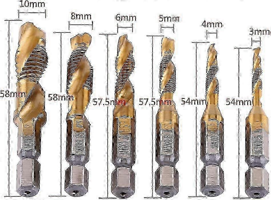 6-Piece Metric Thread Tapping Drill Bit Set M3-M10 - Titanium Coated Hss Hex Shank Tools For Metalworking_cp -NEW