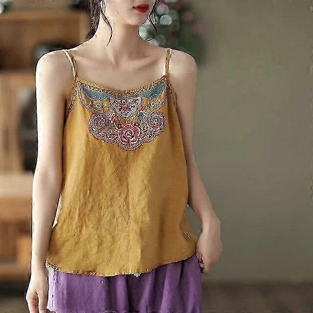 Spaghetti Strap Blouse for Women, Vintage Loose Summer Top in Solid Cotton Linen
