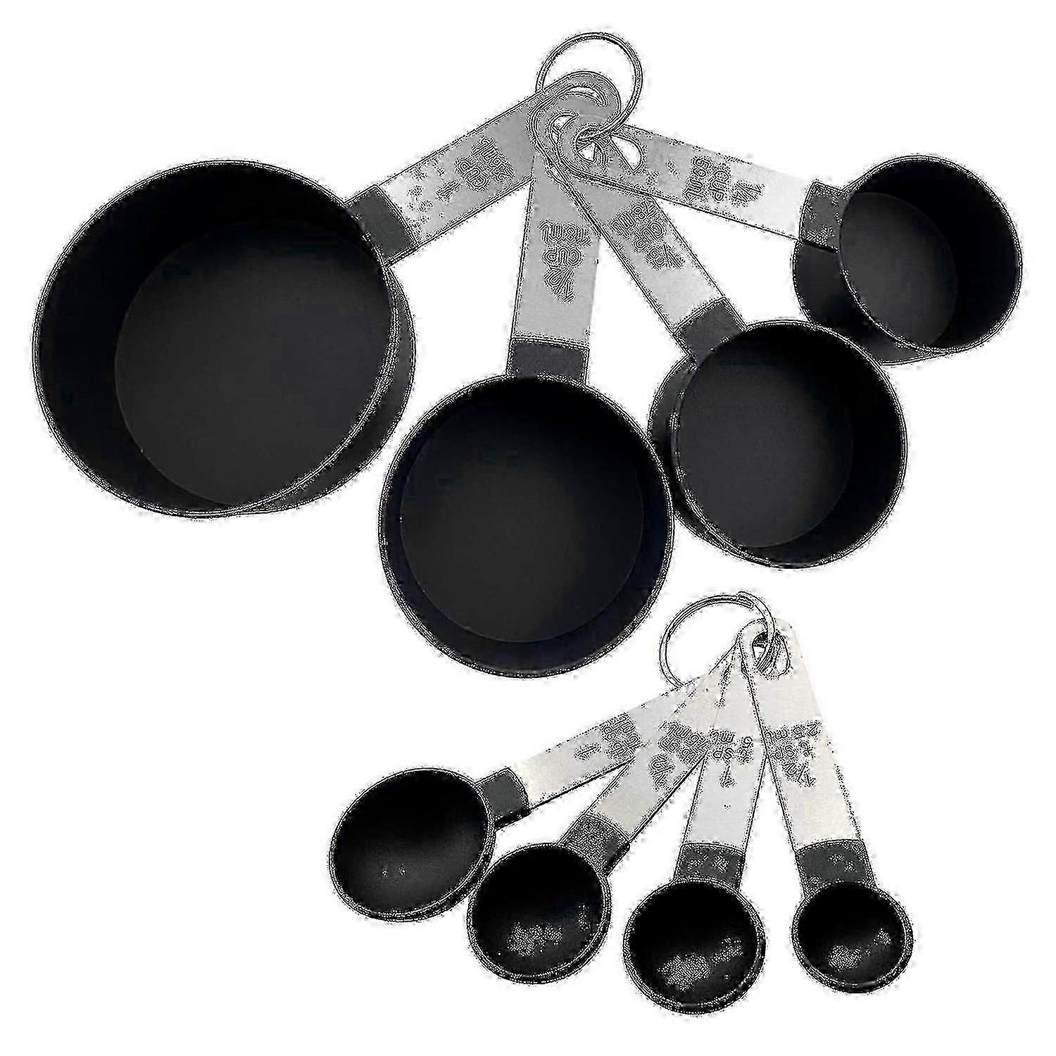 8-Piece Stainless Steel Measuring Cups Spoons Set, Stackable Kitchen Tools For Dry/Liquid Ingredients (Black)_1