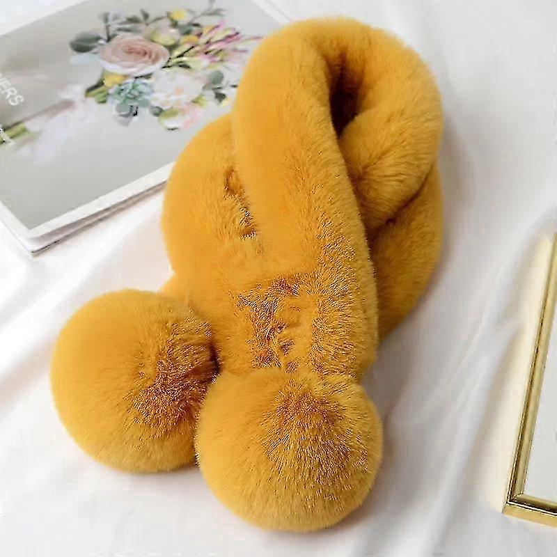Rabbit Fur Collar Winter Scarf for Women, Cozy Plush with Two Decorative Balls
