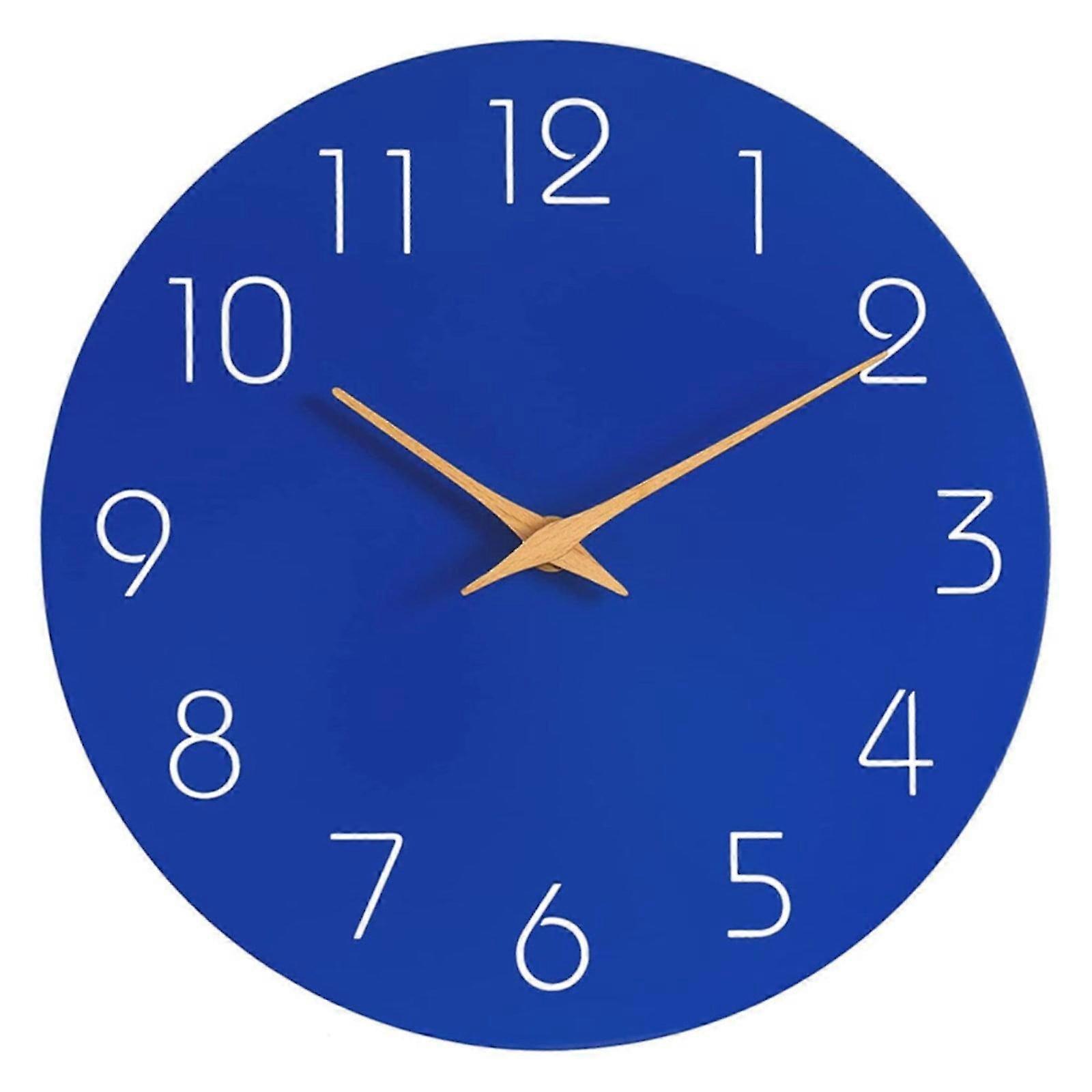 Blue Silent Clock for Meiiso - Wooden Non-Ticking Wall Clock for School Decor