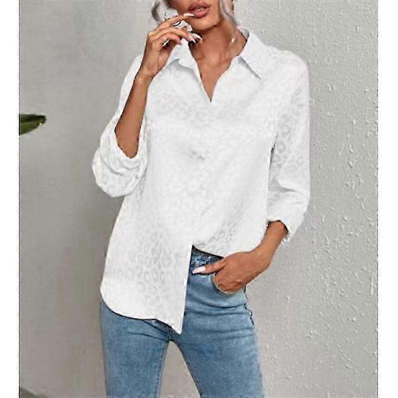 Spring Blouse for Women Leopard Print Polo Neck Long Sleeve Shirt