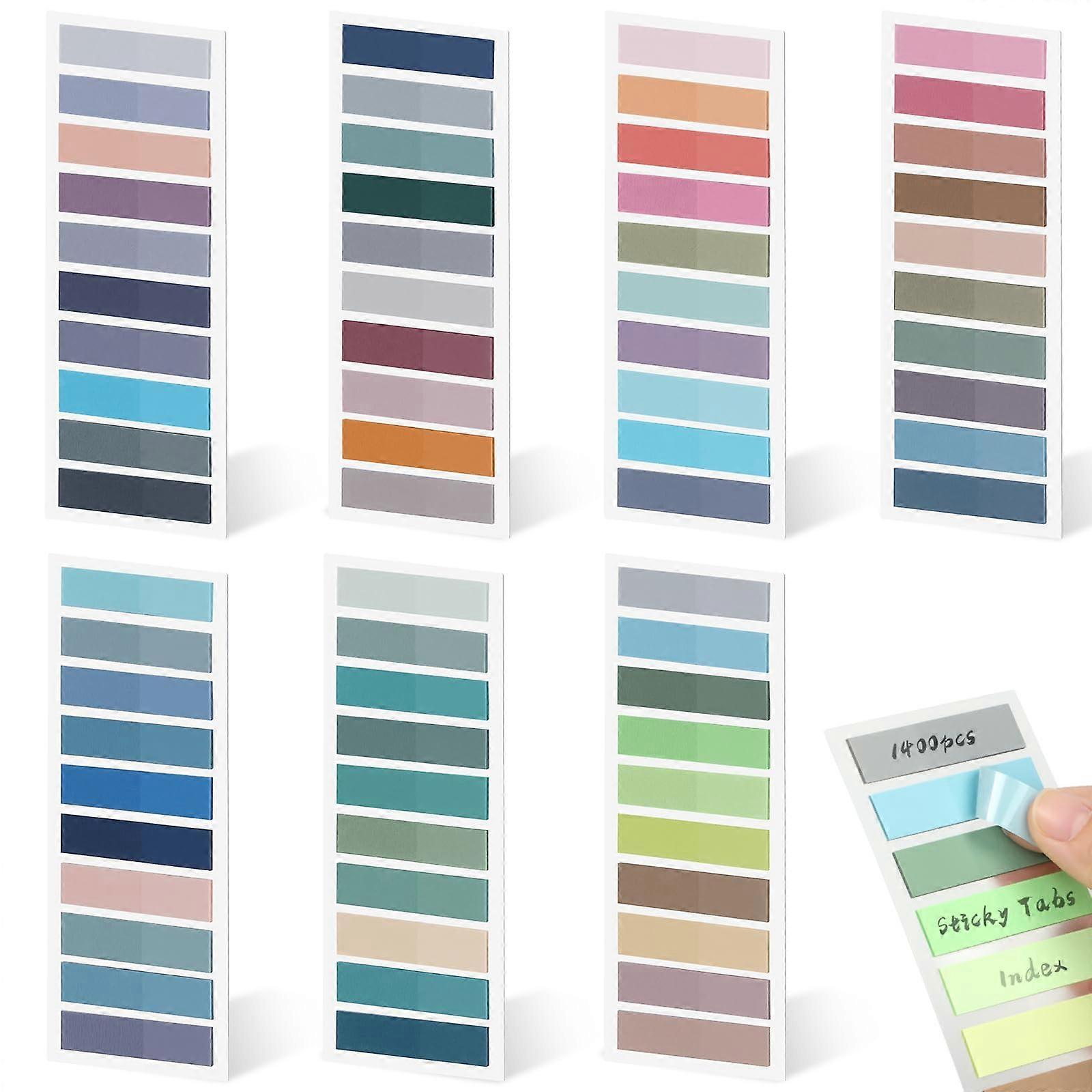 <p> Extensive set: contains 7 pads with a total of 1400 writable semi-transparent adhesive strips in 70 unique colours. Ideal compatible with versatile marking and clear organisation. Writeable and semi-transparent: the waterproof, semi-transparent PET page markers can be written on, while the text underneath remains clearly visible. Reusable and residue-free: these adhesive markers can be repositioned several times and removed without leaving any residue. Ideal compatible with frequent notes and markings. Compact and portable: thanks to the practical size, these small sticky notes fit perfectly in cases, planners or bags and are ideal compatible with daily use on the go. Versatile and aesthetic: the coloured sticky notes aesthetic are perfect compatible with clear planning, efficient organisation and stylish annotation in the office, home or library. </p>