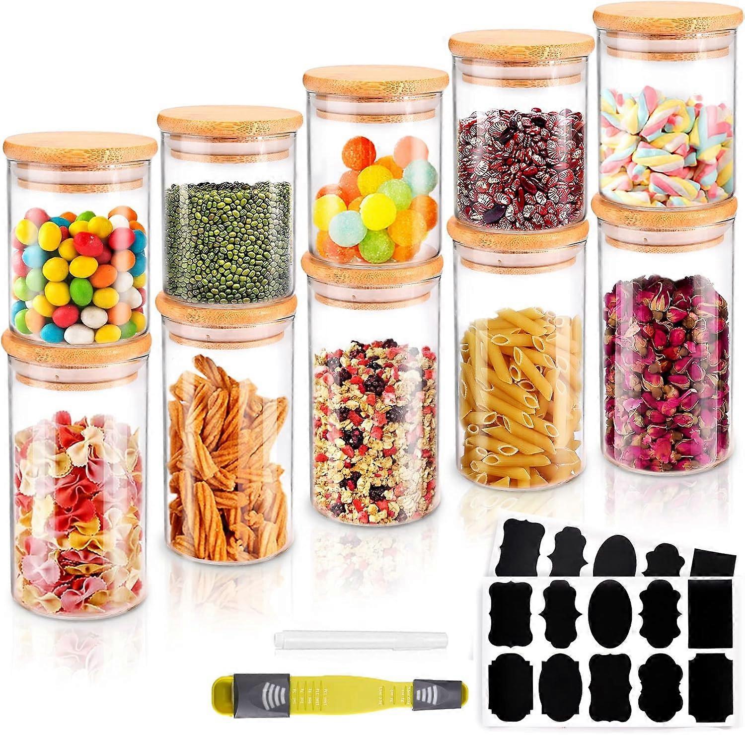 Storage jars, set of 10, made of borosilicate glass, kitchen glass containers with lids, sealed storage jar set, kitchen storage glass spice jars f