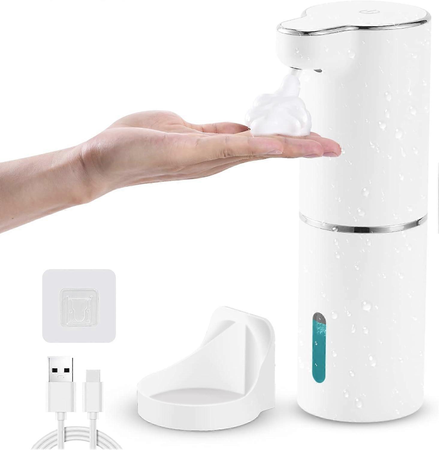 Automatic Wall-Mounted Foam Soap Dispenser, Electric Soap Dispenser Set with USB Charging and Infrared Motion Sensor for Kitchen & Bathroom (White)