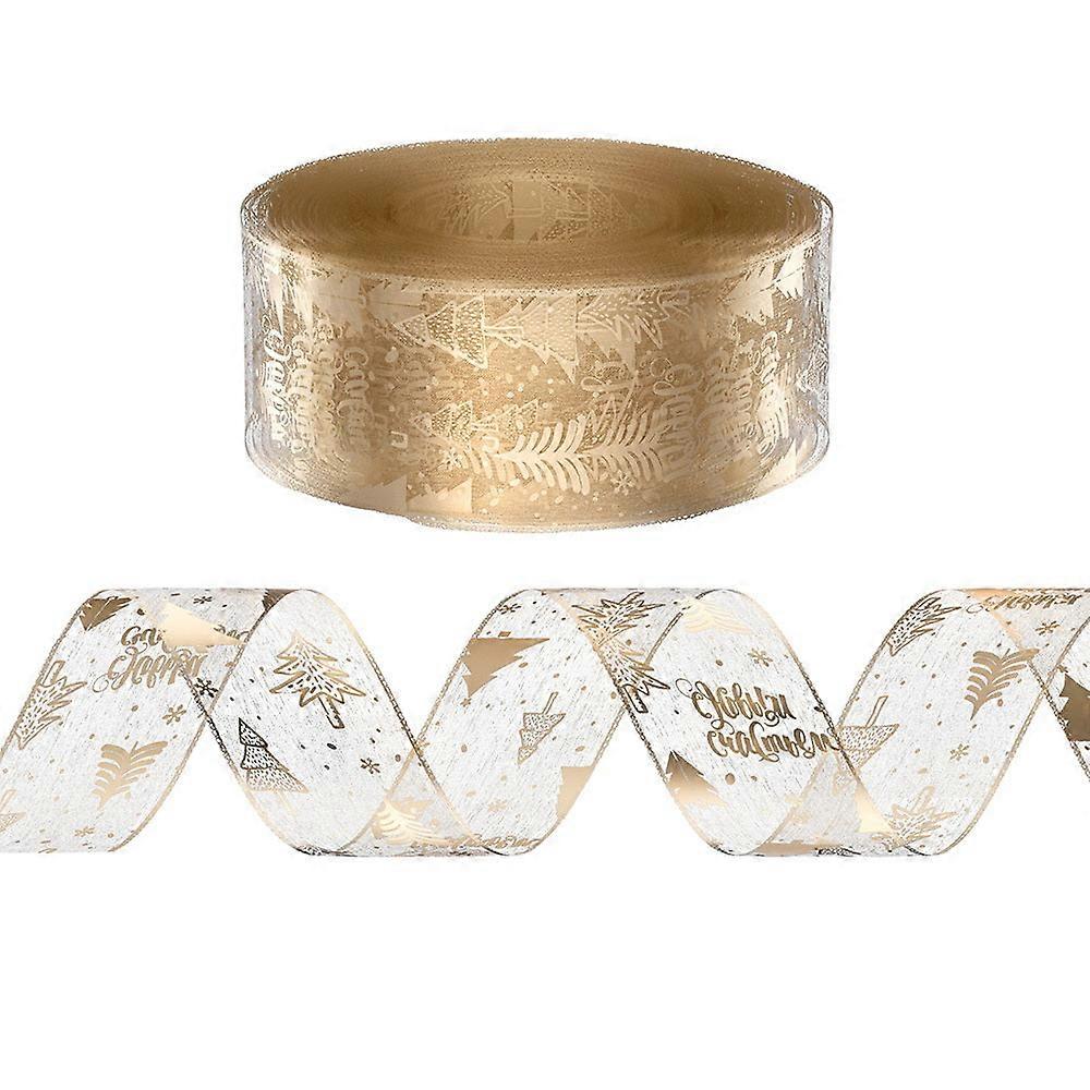 Jingle Jollys 20M Christmas Ribbon Roll Bow Printed Xmas Tree Decor Gift Gold Seasonal Decorations