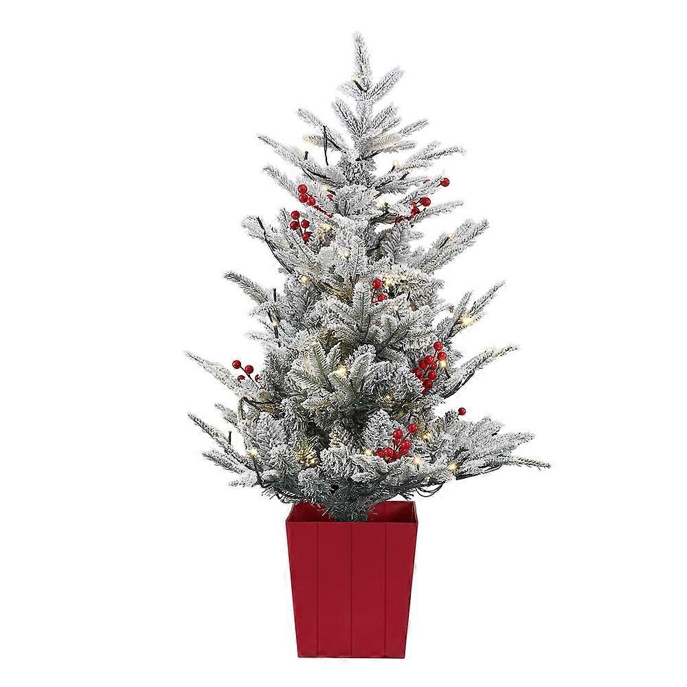 Bring Festive Joy To Your Home This Holiday Season With This 100Cm Christmas Potted Tree From Jingle Jollys. This Compact And Elegant Tree Stands Out With Its Warm White Led Lights Creating A Welcoming Glow For Any Room. The Realistic Flocked Leaves And Bright Red Berries Add A Touch Of Natural Charm While The Sturdy Bucket Base Ensures Stability On Any Surface. Perfect For Small Spaces Or Tabletops This Artificial Tree Is Easy To Assemble And Disassemble Without Tools For Effortless Holiday Decorating. Make Your Home Merry And Bright—Order Yours Today!
