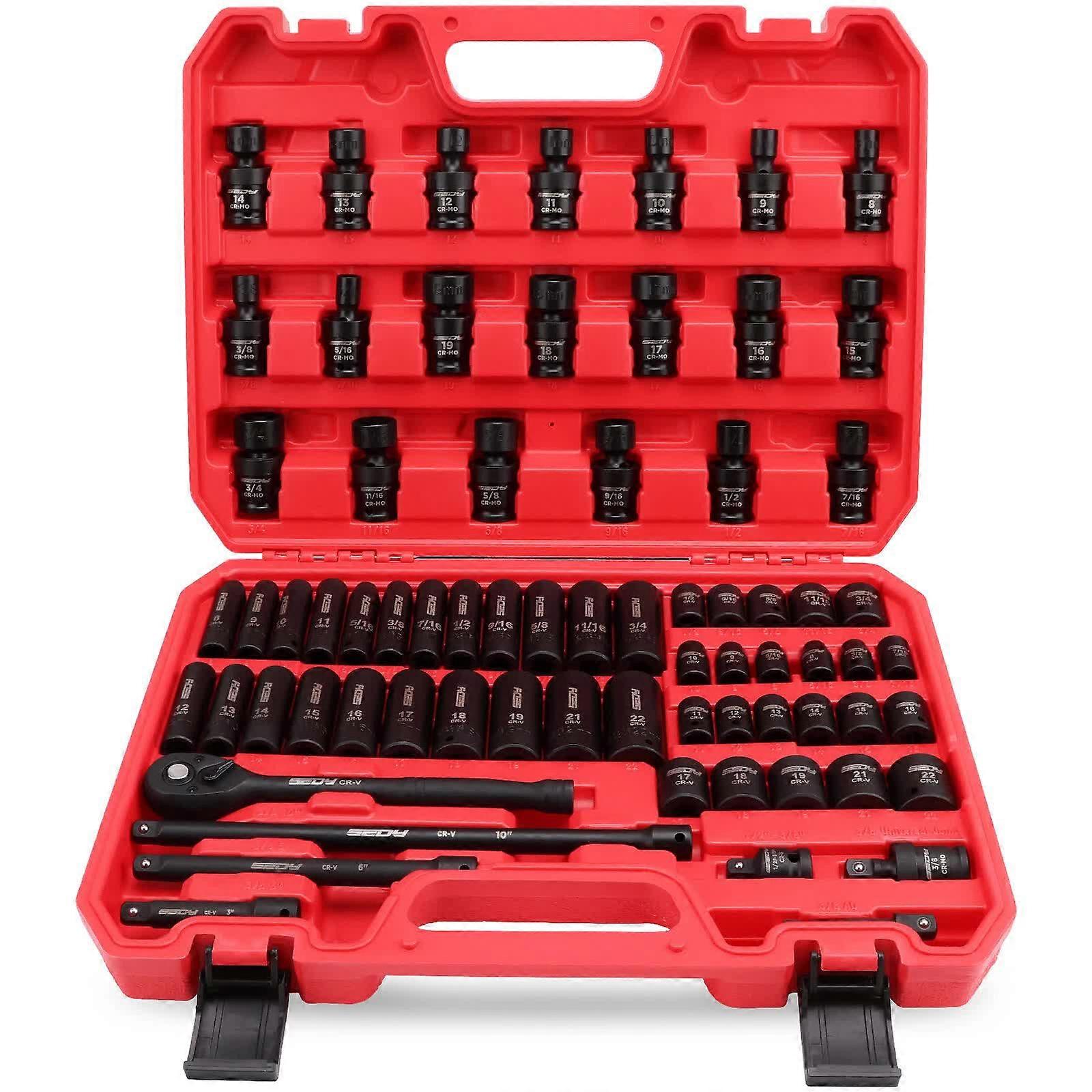 Comprehensive Set: Includes Both Sae (5/16" To 3/4") And Metric (8Mm To 22Mm) Sizes For All Your Repair Needs. Versatile Reach: Comes With Quick-Release Ratchet Handle Power Drill Adapter And Three Extension Bars (3" 6" 10") To Reach Tight Spaces Easily. Easy Identification: laser-Etched Sockets For Quick Size Recognition; Black Phosphate Coating Provides Corrosion Resistance And Long-Lasting Durability. Precise Operation: 360° Rotating Impact Universal Joint Allows Efficient Work In Confined Areas. Maximum Durability: Crafted From Premium Cr-V And Cr-Mo Steel Heat-Treated And Impact-Resistant For High Torque Performance. Specifications: