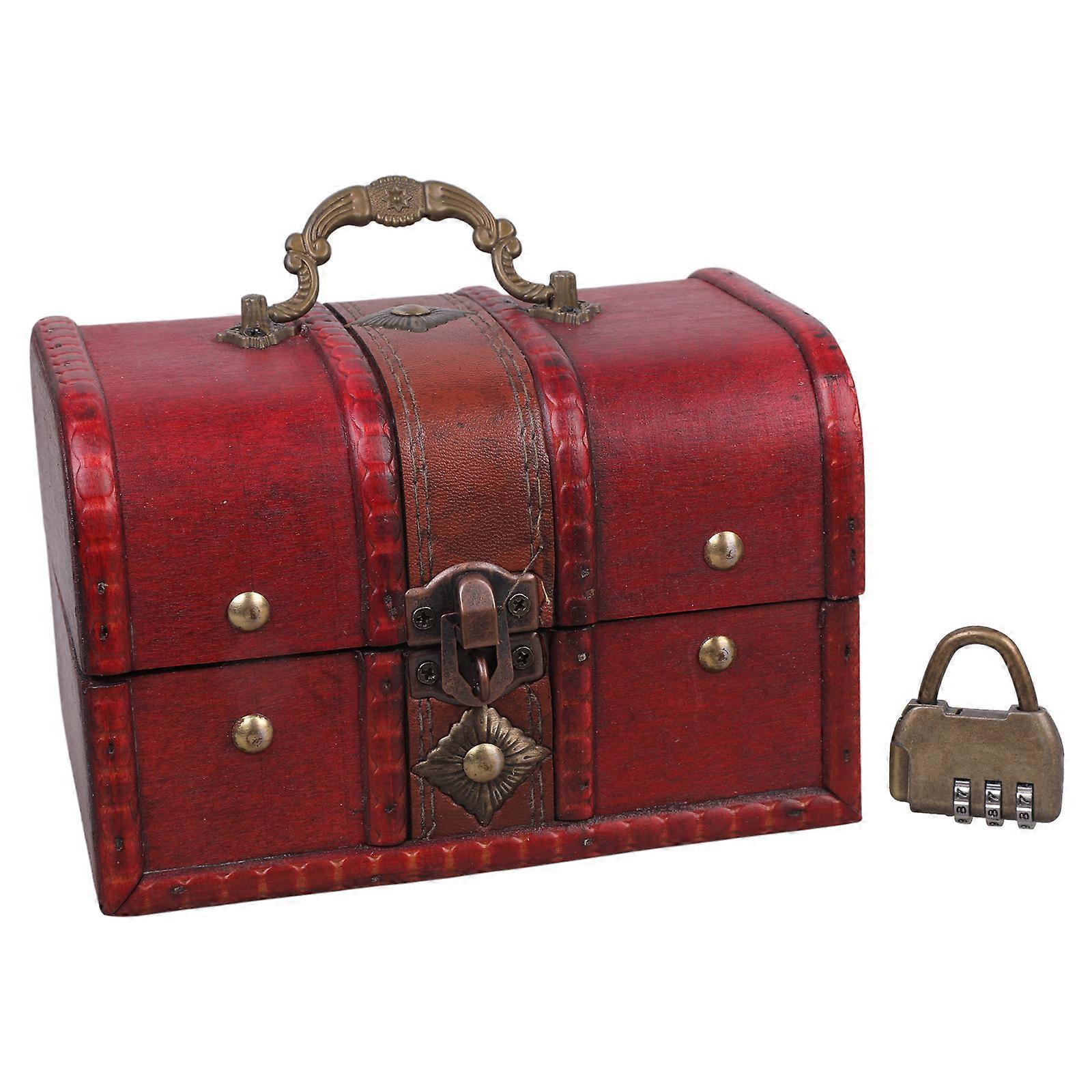 Antique Vintage Wooden Treasure Chest Box Decorative Wood Jewelry Storage Trunk Box with Metal Lock for Pirate Jewelry Keepsake Women Gifts S