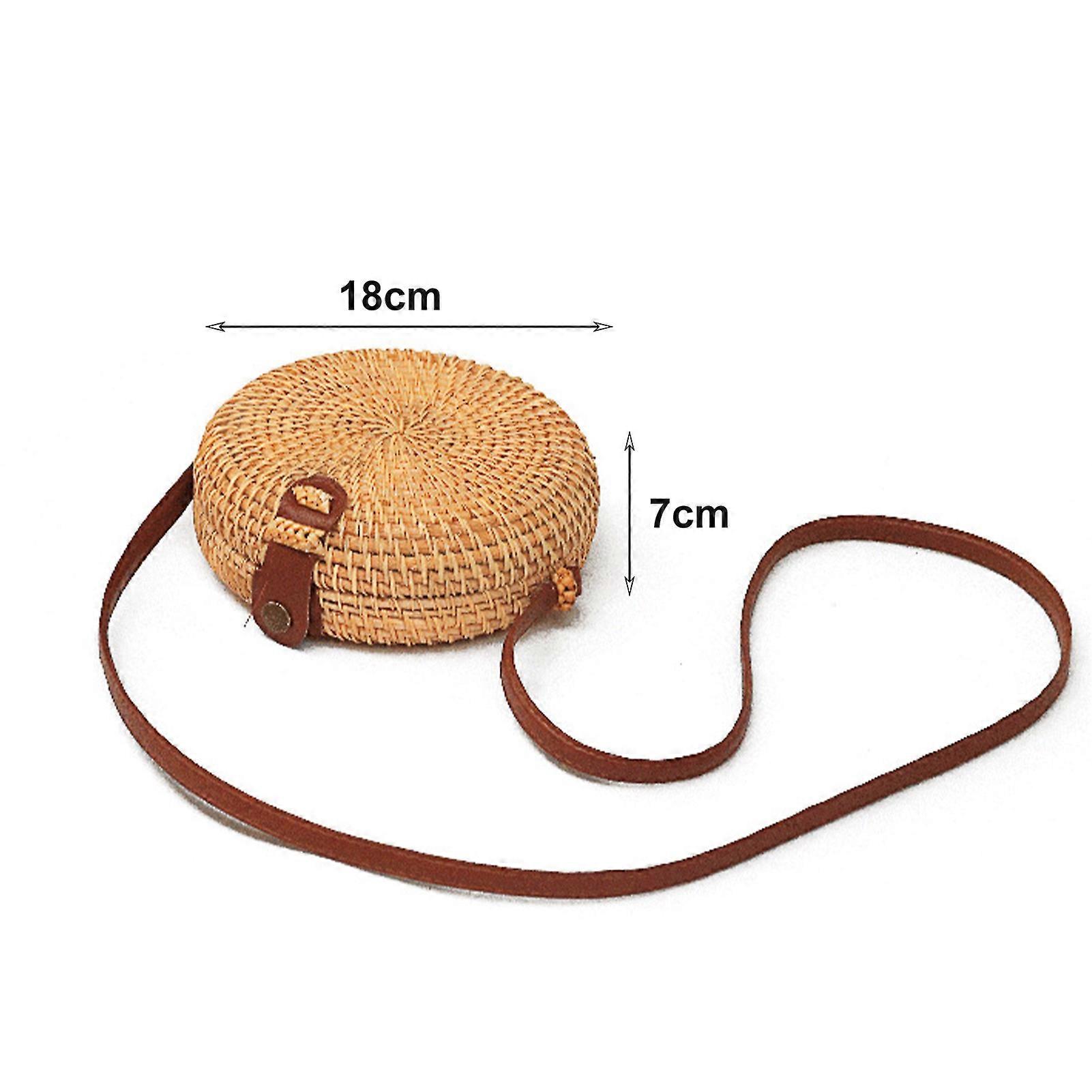 Handwoven Round Rattan Bag with Shoulder Strap Large Capacity Natural Chic Travel Use Messenger Bag