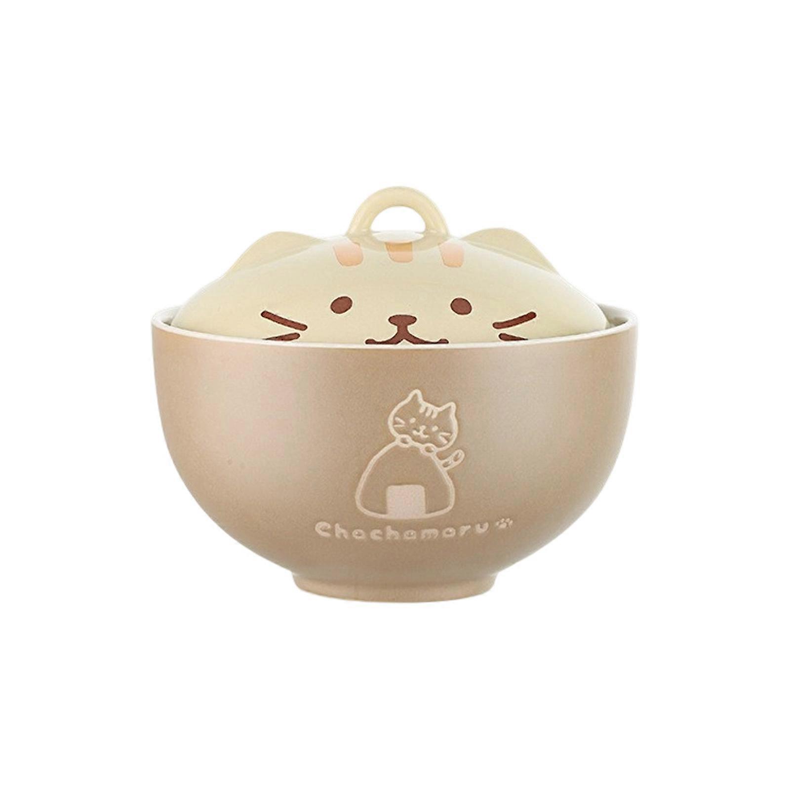 Japanese Creative Ceramic Soup Bowl with Cartoon Cats Cover Designs 550ML Capacity Microwave Dishwasher Safe Tableware light color