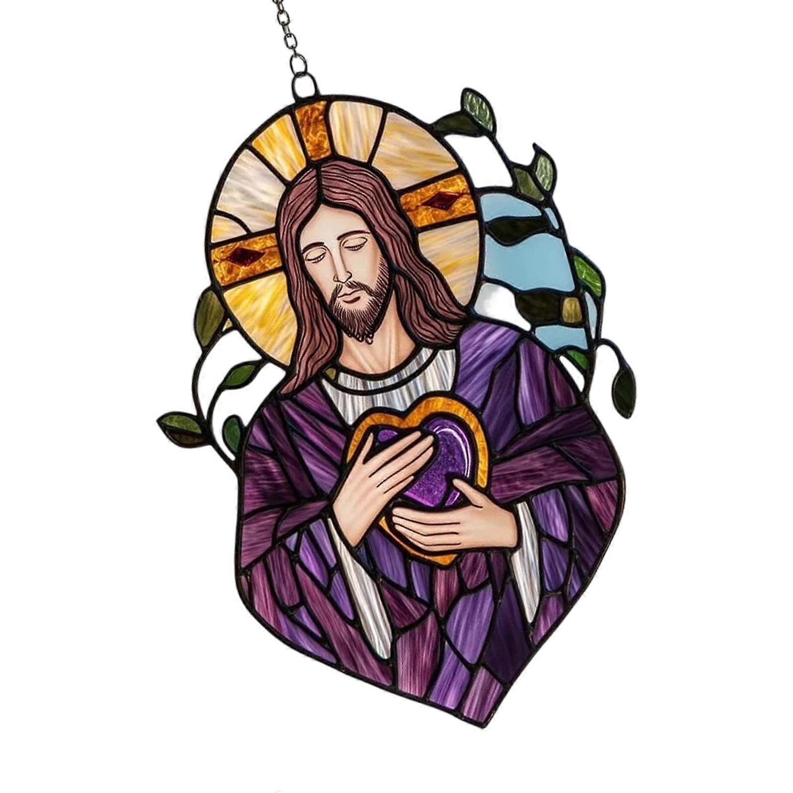Christ Jesuses Sun Catcher,Stained Glass Window Hangings Decors Window Decors Hanging Ornament for Halloweens,Christmas Multicolor
