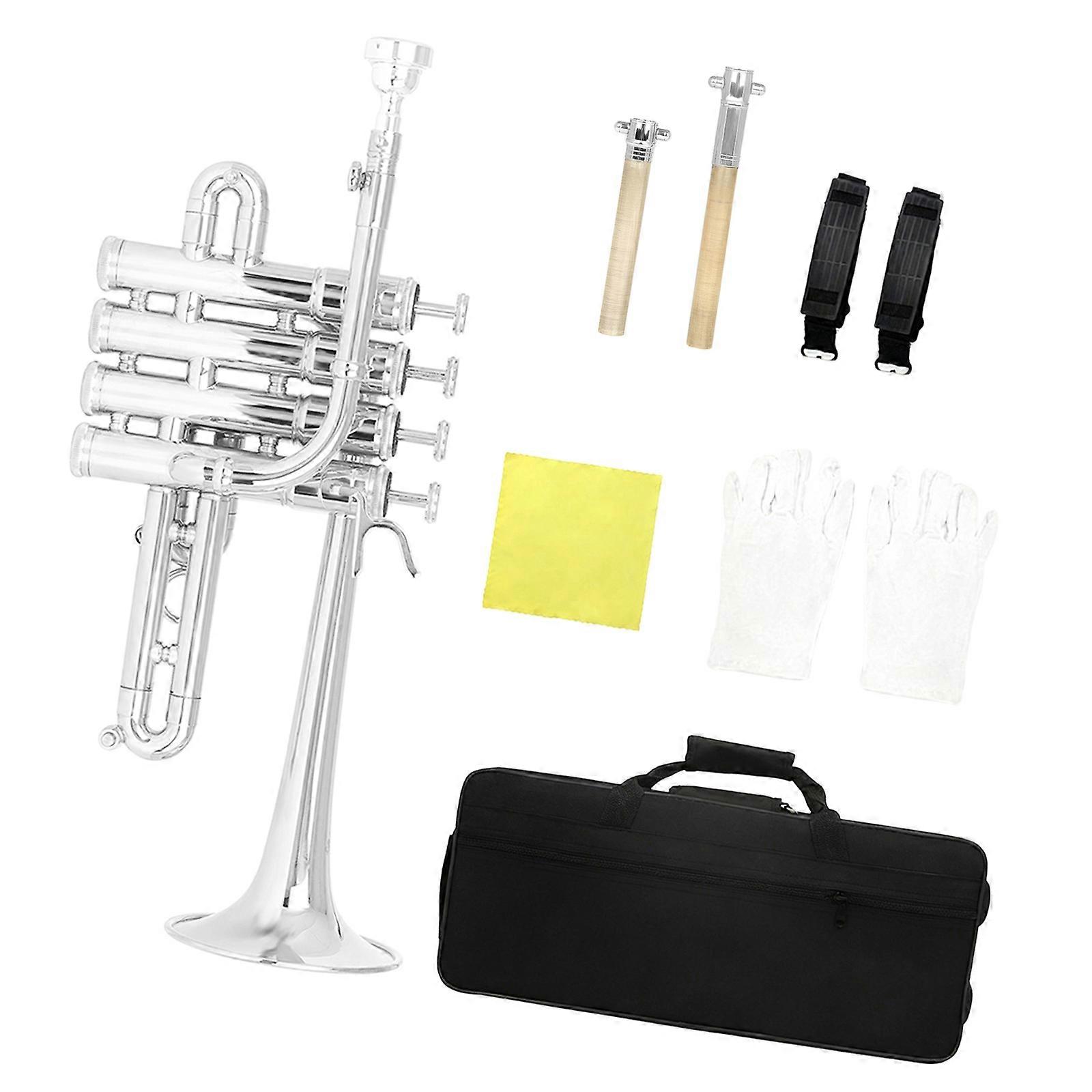 Standard Trumpet Set Pocket Trumpet Bb Brass Musical Instrument with Mouthpiece Gloves Cleaning Cloth Case for Student Silver