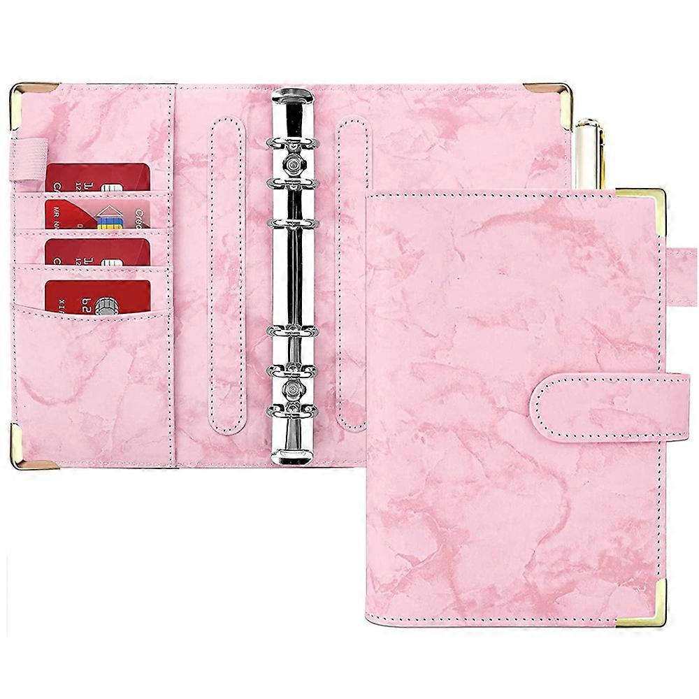 A6 PU Leather Binder Cover Bill Card Money Organizer Marbling Pattern Magnetic Clasp Gold Frame Protection Corners Binder Shell