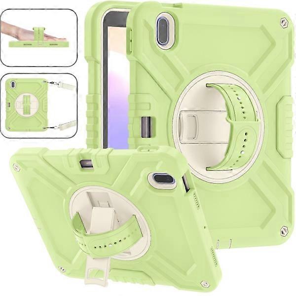 Compatible with iPad 11 11th Gen / 10.9 10th Gen 2022/2025 X Rotation PC Hybrid Silicone Case with Strap Yellow Green White