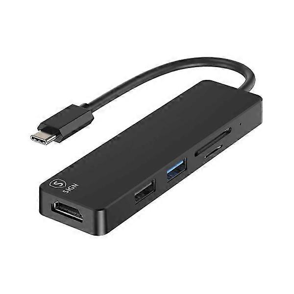 SiGN 5-in-1 USB-C adapter HDMI 4K MicroSD, max 15W, 5V, 3A - Black Black