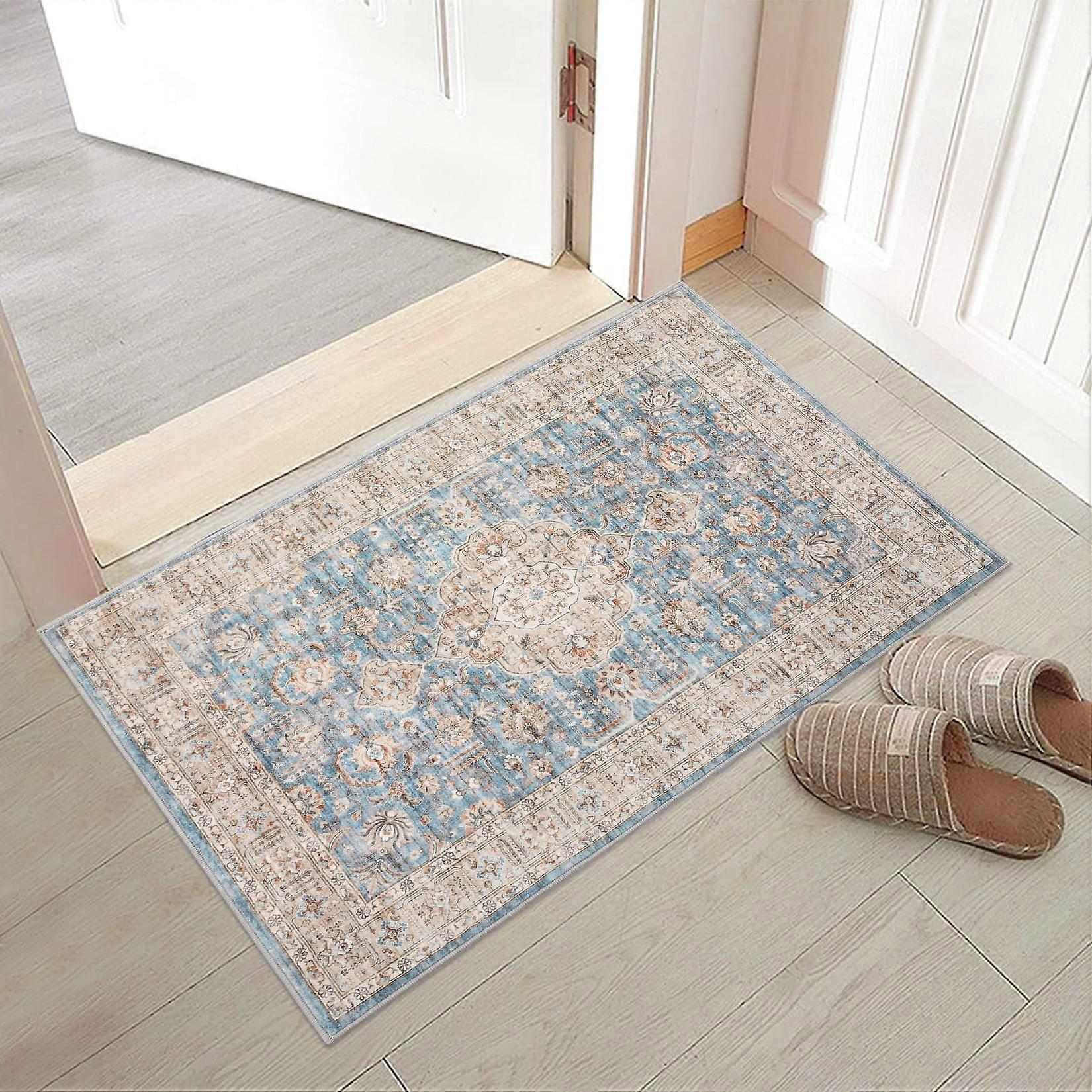 WhizMax 2' x 3' Non-Slip Area Rugs Kitchen Vintage Persian Rug Floral Boho Doormat Entryway Low Pile Rug Medallion Door Mat for Front Door, Blue