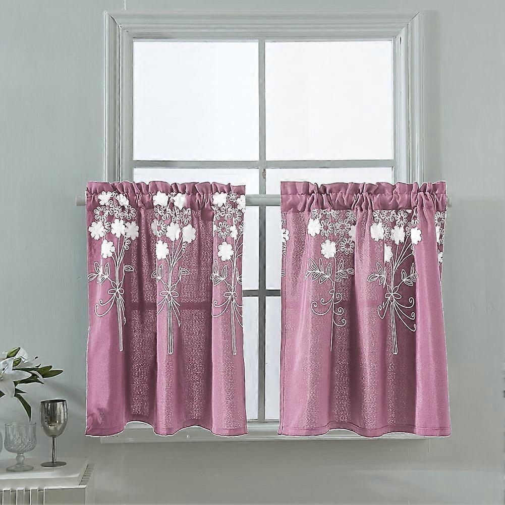 Sheer Kitchen Curtains Pink 74*61cm, Leaf Embroidered Cafe Curtains, Semi Sheer Short Half Window for RV Camper, Farmhouse Door, Bathroom, Basement