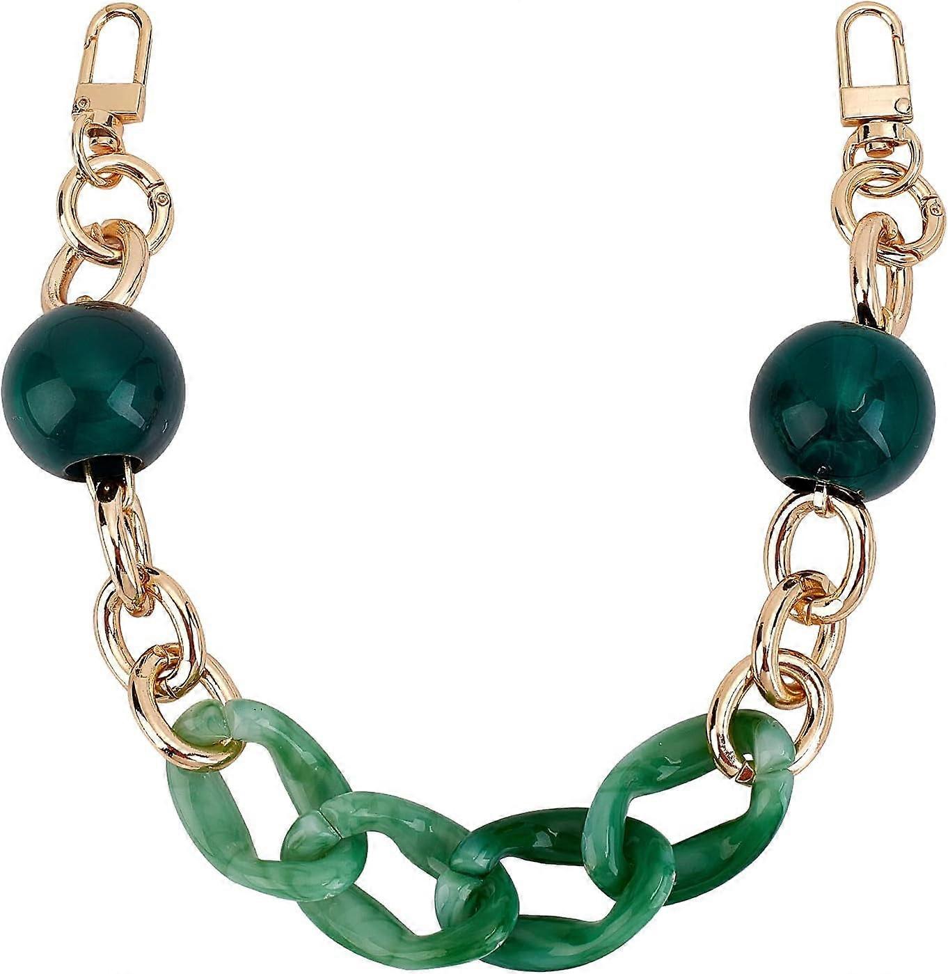 13" Resin Purse Chain Handle, Acrylic Bag Strap with Light Golden Alloy & Dark Green Beads, Detachable DIY Replacement Compatible with Clutches
