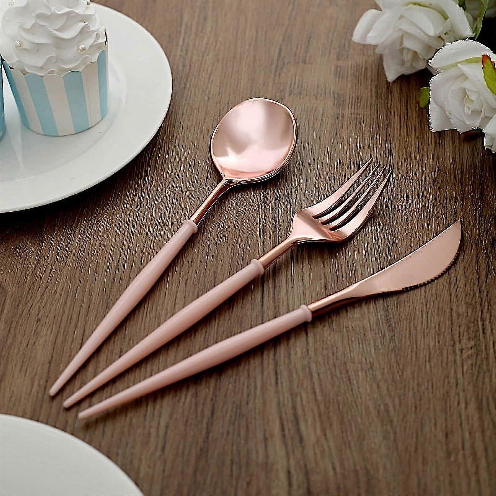 BalsaCircle 24 Rose Gold Blush Disposable Plastic Cutlery Spoon Fork Knife Set Wedding Party