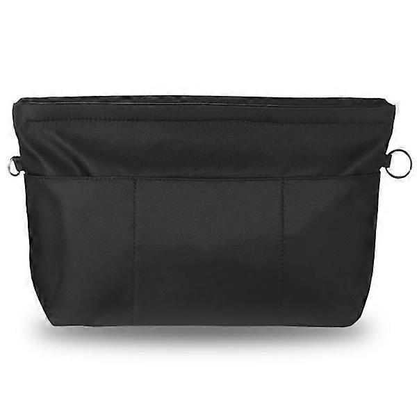 Handbag organizer, nylon bag organizer with key ring, inner pockets, waterproof for handbags, black, L