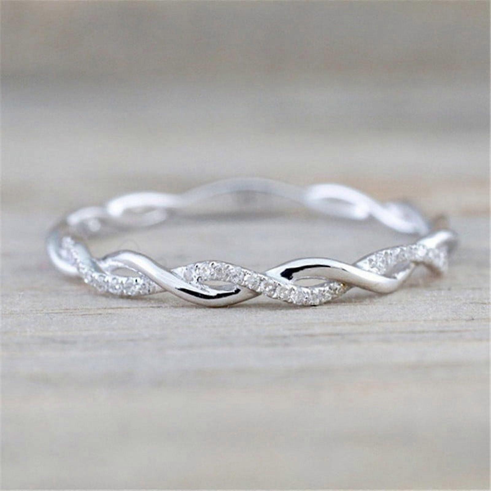 Designice Twist Ring for Women Fashion 925 Sterling Silver Stack Twisted Ring Cubic Zirconia Diamond Ring (SilverSize 7)