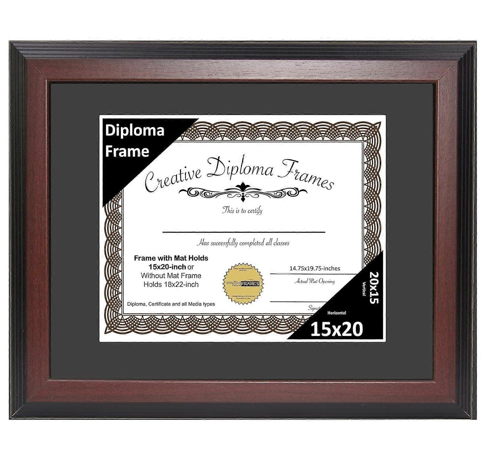 TiaGOC 15x20 Mahogany Finish Diploma Frame with Black Matting Holds 15 by 20-inch Documents with Glass and installed Wall Hanger