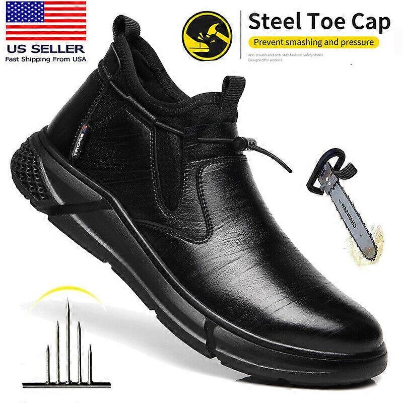 Boots Men Work Waterproof Non Slip Safety Shoes Anti-Punctur Black Shoes Size 12