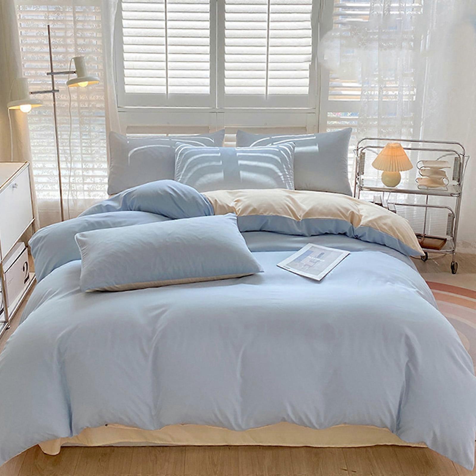 All-Season Bedding Set - 4-Piece Washable Cotton Solid Color Bed Sheet Duvet Cover And Pillowcases Features: Material :98%Cotton,2%Spandex Color: Light blue Product size: 180x220cm/70.86x86.61in, 230x230cm/90.55x90.55in, 74x48cm/29.13x18.89in Packing size: 30cmx30cmx2cm /11.81x11.81x0.78in Gross weight: 1570g/3.46lb Net weight: 1570g/3.46lb Style: Modern Product Description: Premium Quality Material: Made from high-grade washable cotton, this all-season bedding set offers exceptional softness and durability. The solid color design adds a touching of elegance to any bedroom. Complete Set for Convenience: This set includes a bed sheet, Quilt set, and two pillowcases, providing a comprehensively solution for dressing your bed. The matching piece ensure a coordinated and unified look. Easy Care and Maintenance: The cotton material is not just comfortable but also easy to wash and maintain. Simply machine wash on a gentle cycle with cold water and tumble dry for a fresh and clean look every time. Versatile for All Seasons: The all-season design of this bedding set makes it suitable for use throughout the year. Whether it's a cozy winter night or a warm summer day, you can enjoy a restful sleep with this comfortable bedding. Solid Color Options for Every Taste: Available in a variety of solid color options, this bedding set is sure to match your style and décor preferences. Whether you prefer a light tone or a gaily-colored, there's a color to complement your bedroom. Package Content: 1 x Quilt set 1 x Bed sheet 2 x Pillowcase Hello, Dear Customer, Welcome to our Store ! Queen Comforter Set - 4 Pieces Bed in a Bag Set , Bedding Sets Queen with All Season Quilted Comforter, Fitted Sheet, Pillowcases, Queen 70.86x86.61in+90.55x90.55in+29.13x18.89in All products are screened and tested to ensure quality Clearance sale at great prices, welcome to our store to choose products Feel free to contact us if you have any questions.We will solve your problem within 24 hours