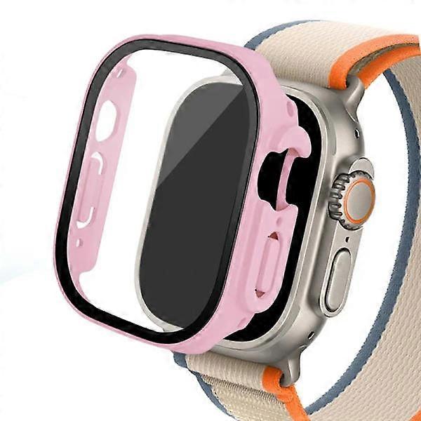 Glass+Case for compatible with Apple Watch Ultra 2 49mm, PC Bumper + Tempered Screen Protector, iWatch Series Bracelet Accessory, Red Pink