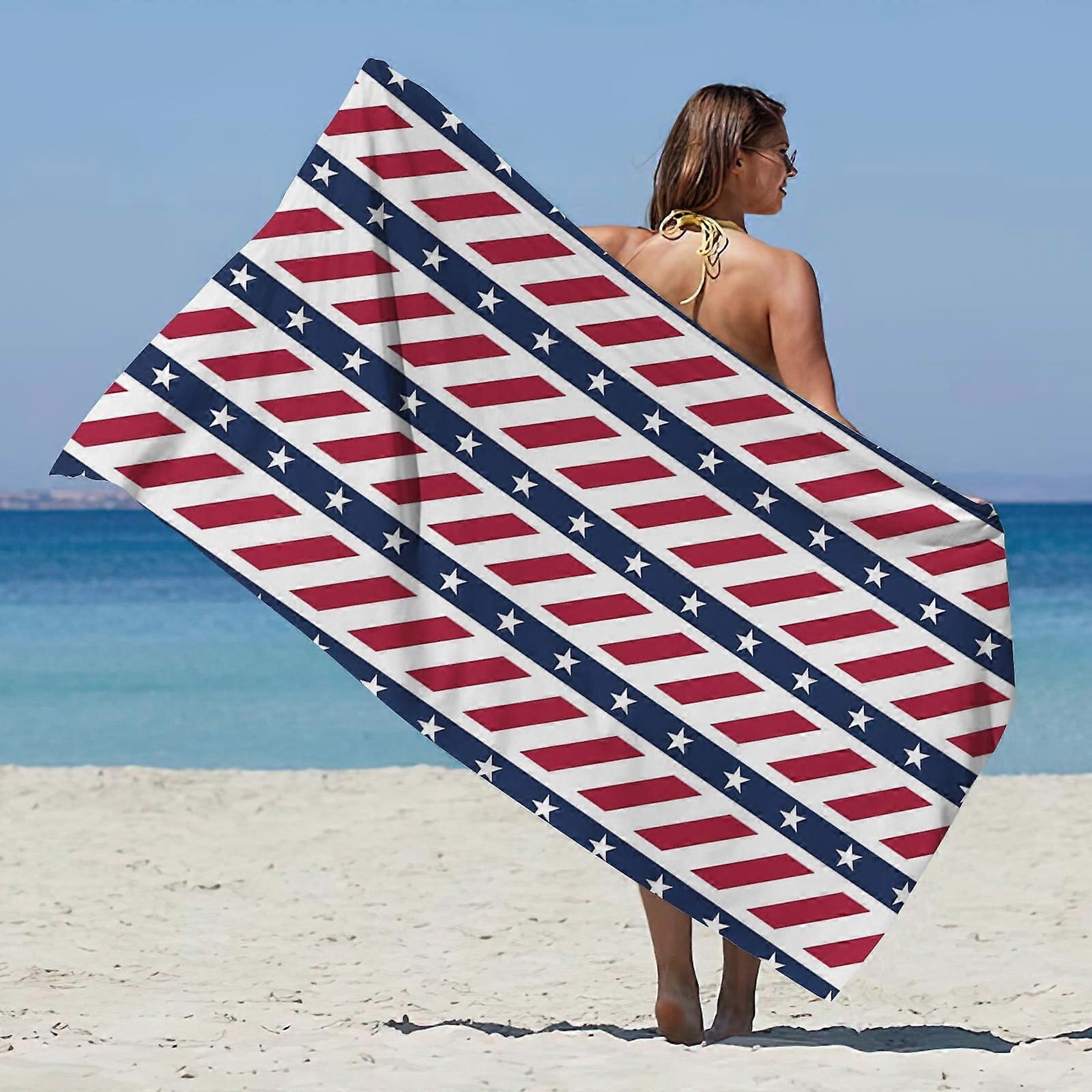 Oversized Microfiber Beach Towels, Patriotic 4th of July Design, Extra Large Quick-Drying Absorbent Towel for Pool, Gym, Sports, Yoga - Compatible