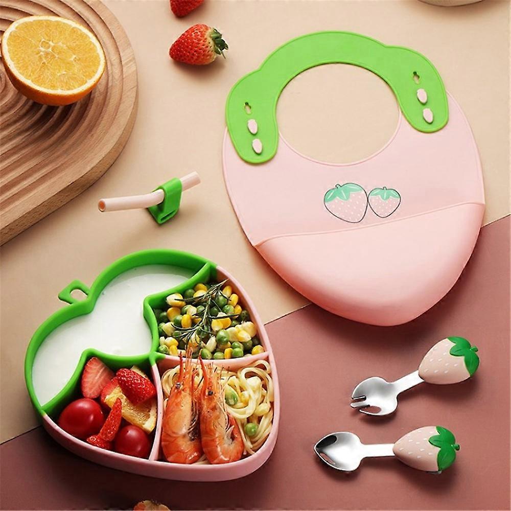 Cartoon Strawberry Baby Silicone Divided Plate Set