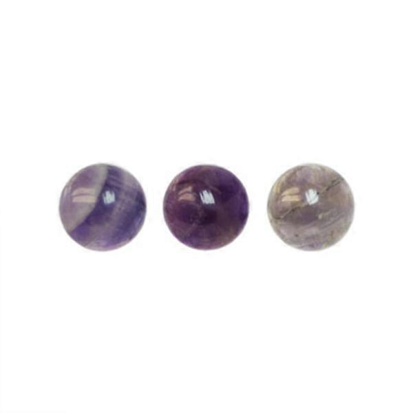 Round, 10mm cabochons of genuine amethyst. Sold per piece. Natural, untreated color Amethyst is perhaps the most popular form of quartz, a semi- or fully transparent stone in purple shades of varying intensity. Cracks that you see inside the stone are completely natural and very common for all types of quartz. Stone is a natural material, keep in mind that veining and colors may vary from delivery to delivery, the picture is just an example of what the stone type may look like.