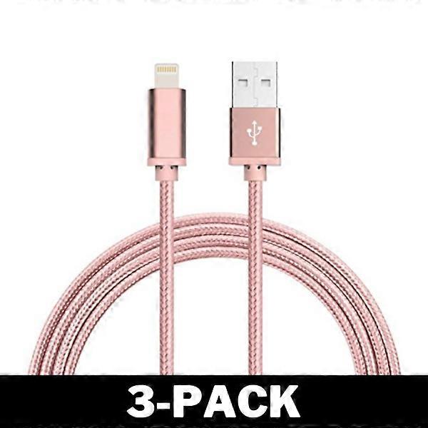 1M Cable compatible with iPhone Charger Nylon Quick Charge Rose Gold 3-Pack