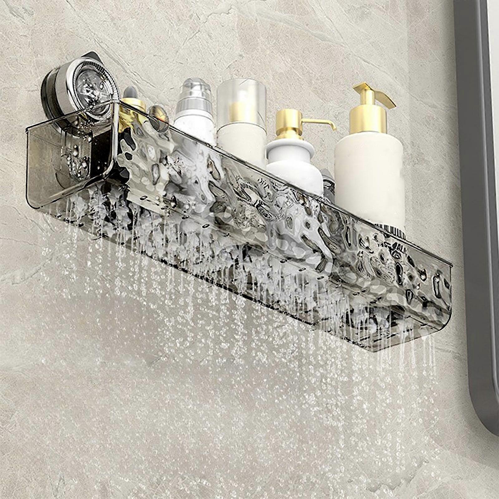 No Drill Clear Wall Caddy, Light Luxury Glacier Pattern Suction Shelf, Compatible with Bathroom & Shower Storage