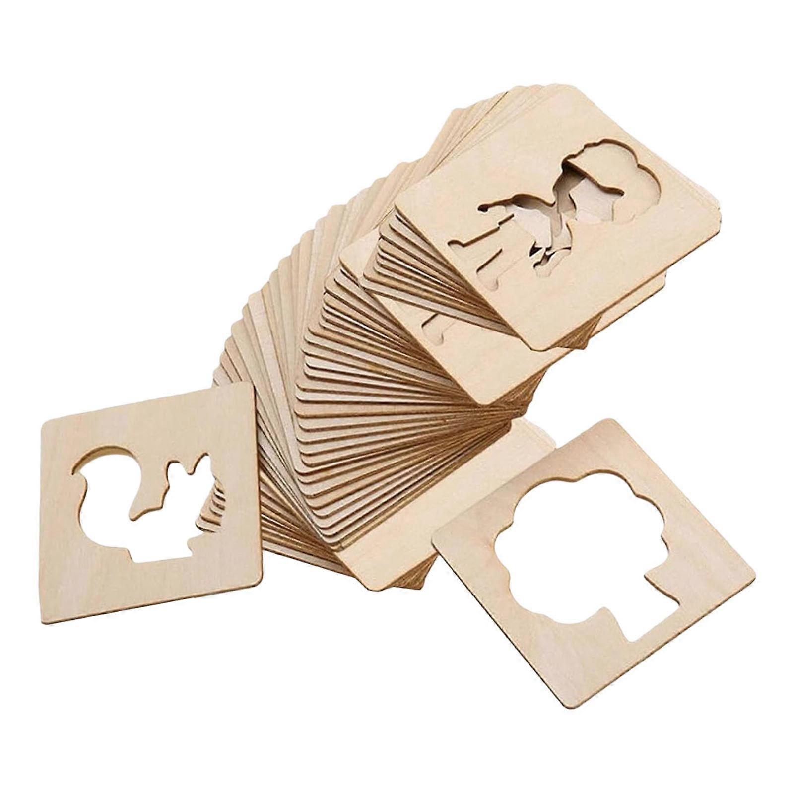 60Pcs Hollowed Wooden Templates Kids Drawing Stencils For Card Making Painting Scrapbooking Journal Kid Room Wall Art Multicolor