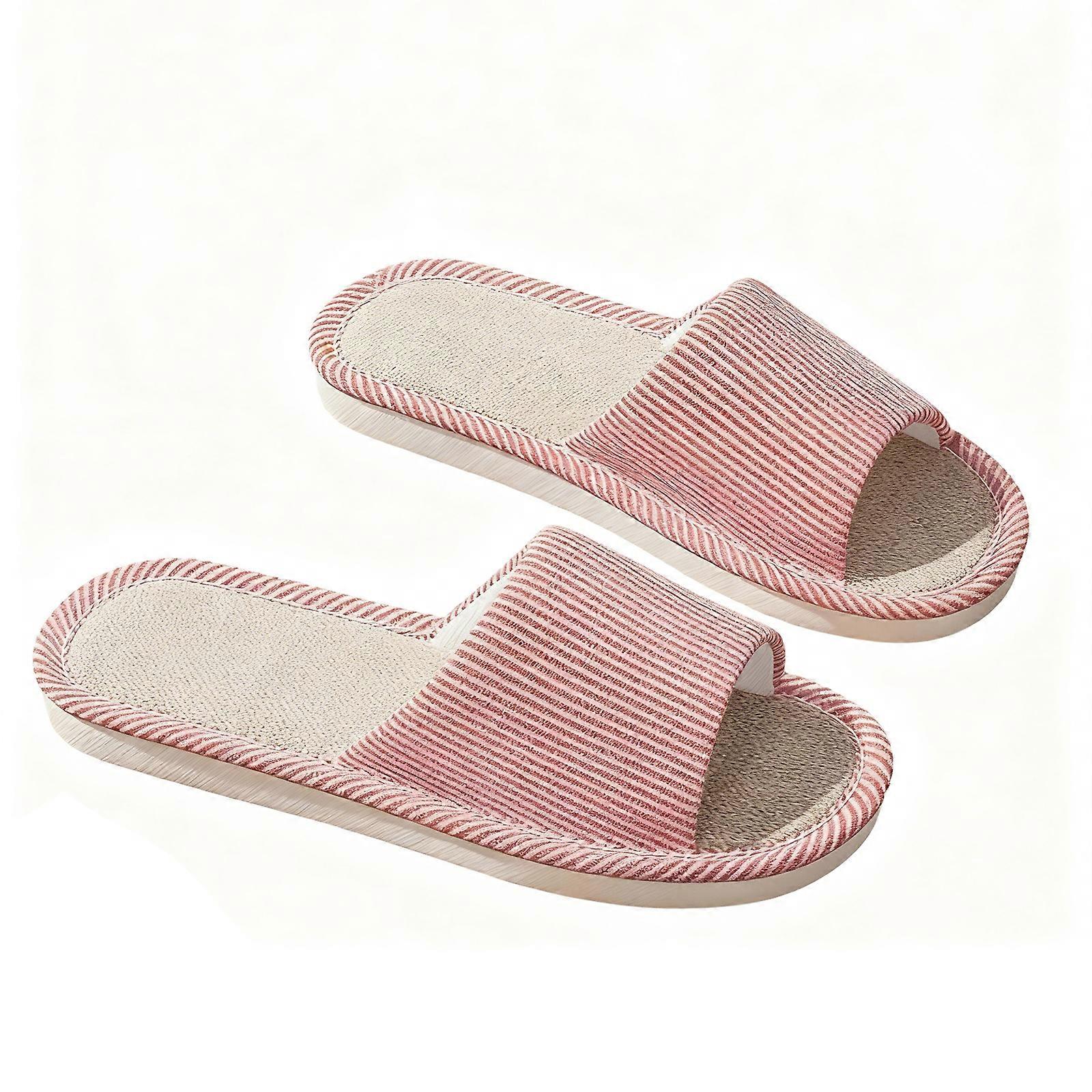Women's Linen Lining House Slippers Light Weight Anti Slip Bedroom Shoe Comfortable Breathable Indoor Slippers for Adult Red C