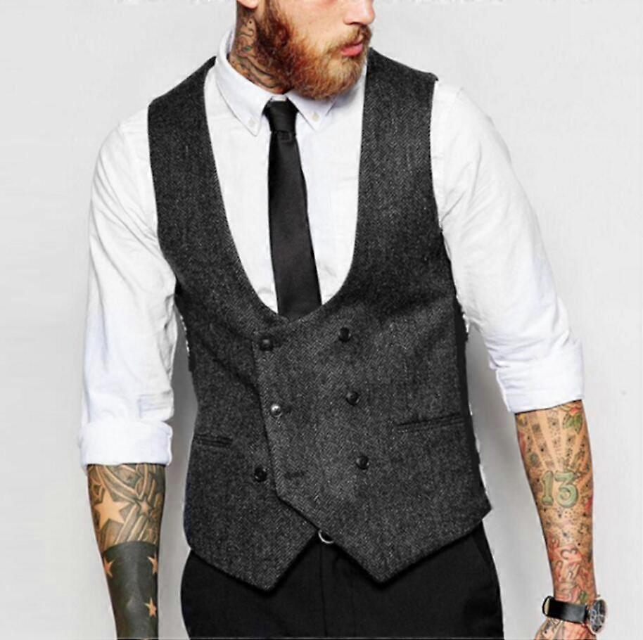 Vintage Men's Formal Business Dress Vest V-neck Double Breasted Waistcoat Waist