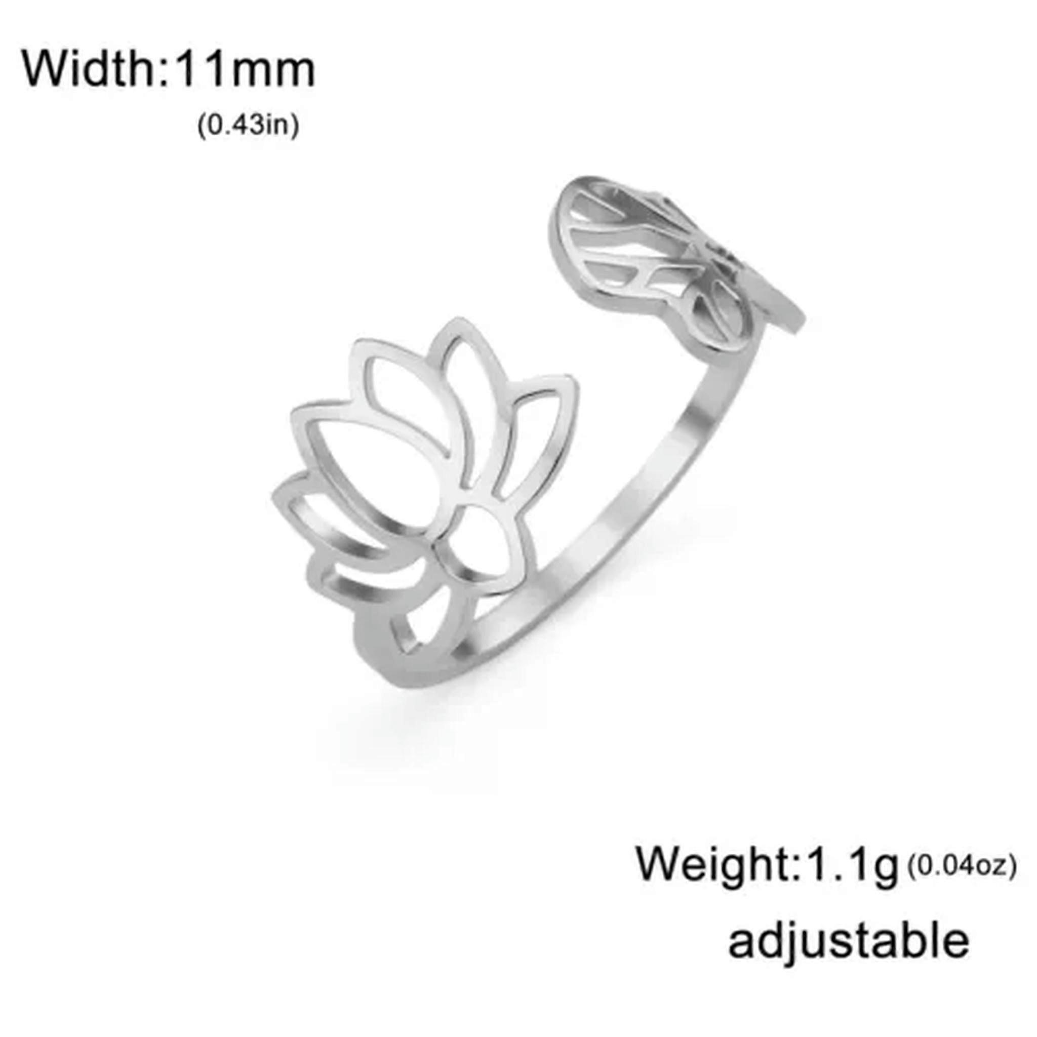 RSAMD Lotus and Leaf Open Rings Stainless Steel Flower of Paradise Adjustable Jewelry-Ajustable-A Steel