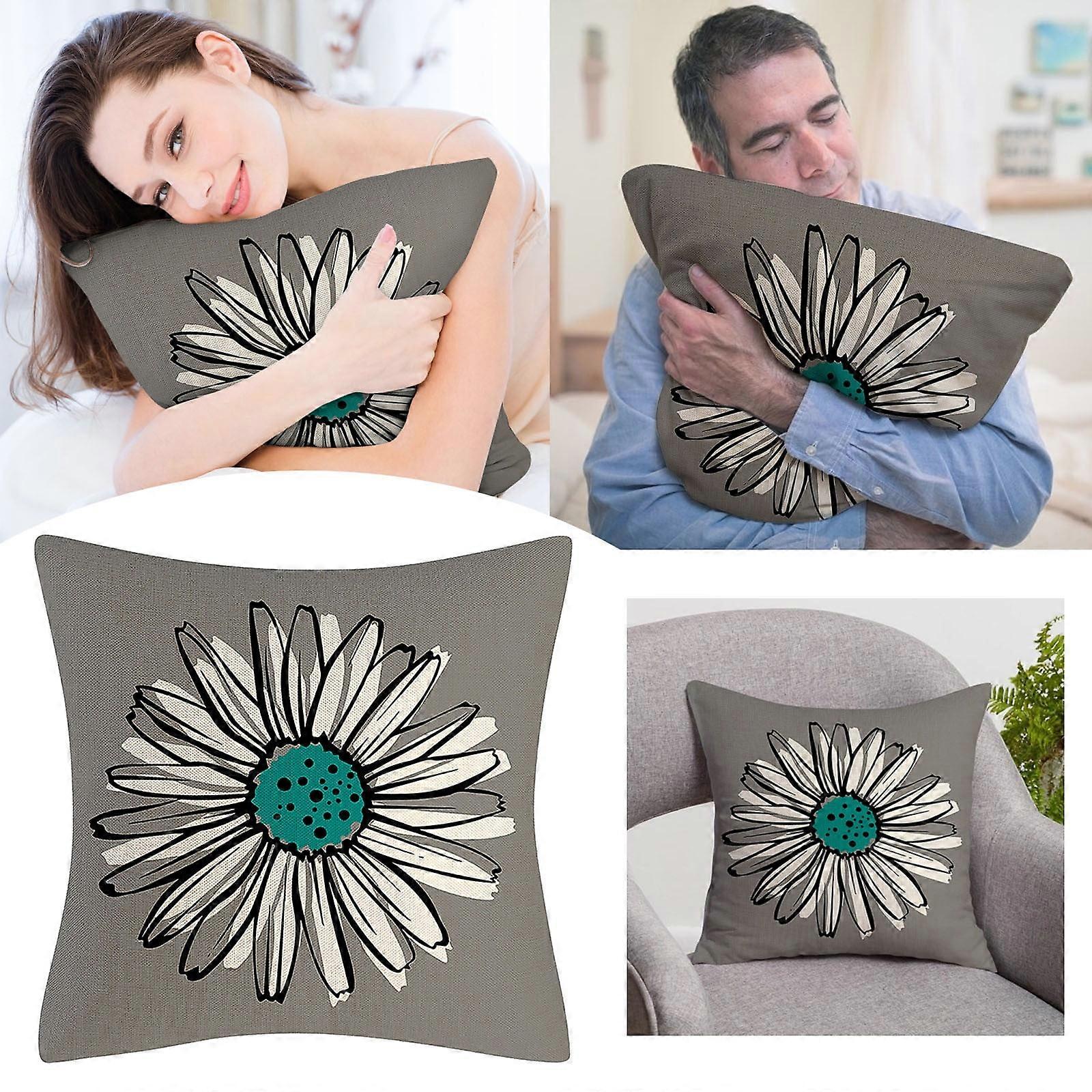 Green Pillowcase Modern Daisy Pillowcase Decorative Outdoor Linen Square Pillowcase for Sofa Sofa Beds and Cars 18x18 Inches (45 X 45 Cm)