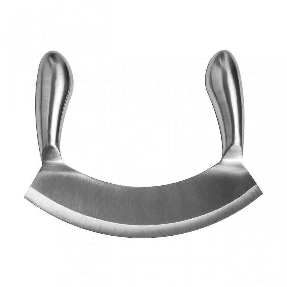 8.5in Stainless Steel Double-Handled Mezzaluna Knife Pizza Cutter Curved Blade Kitchen Herb Mincer Fruit Vegetable Salad Slicer