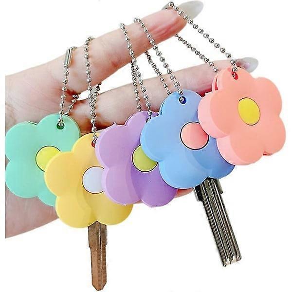 5-pack Floral Key Covers Cute Silicone Key Covers Floral House Key Covers Portable Key Covers (Blue, Pink, Purple, Orange, Green)