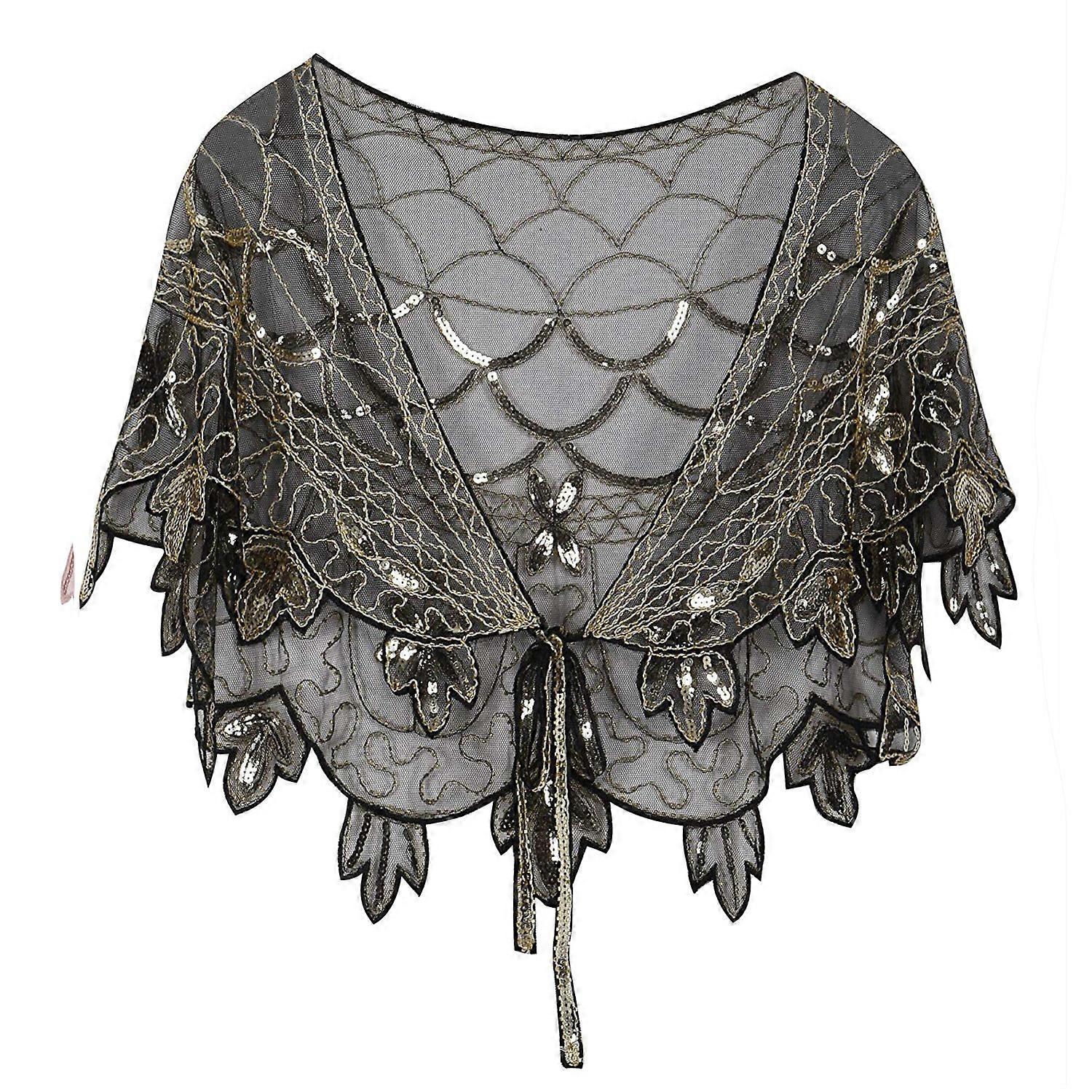 Women 1920s Sequin Cape Sheer Lace Shrug Lacing Bolero Shawl Evening Prom Ball