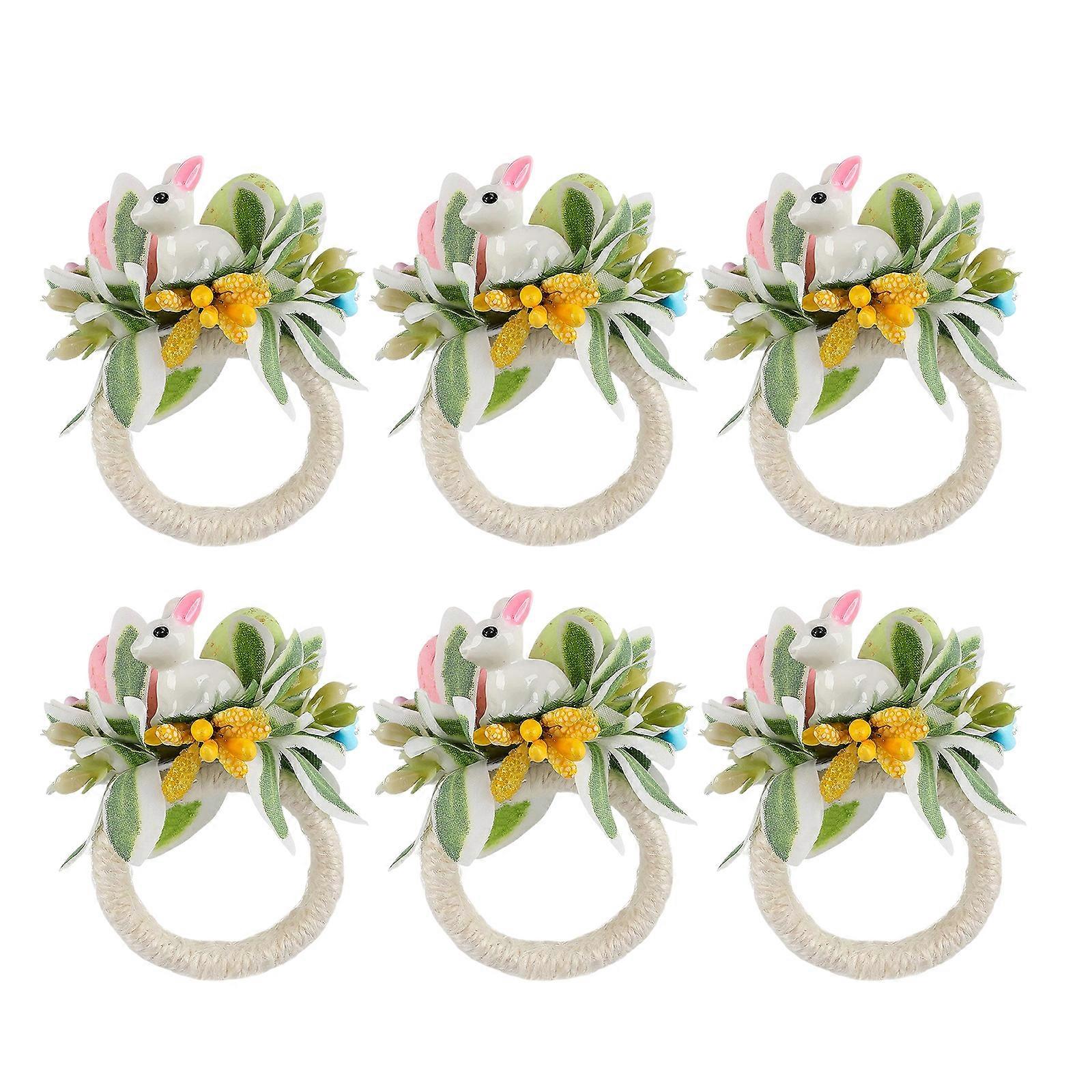 Easter Wood Napkin Rings Decorative Rabbit Theme Napkin Holder Seasonal Decoration for Dinning Table Home Accent Multicolor